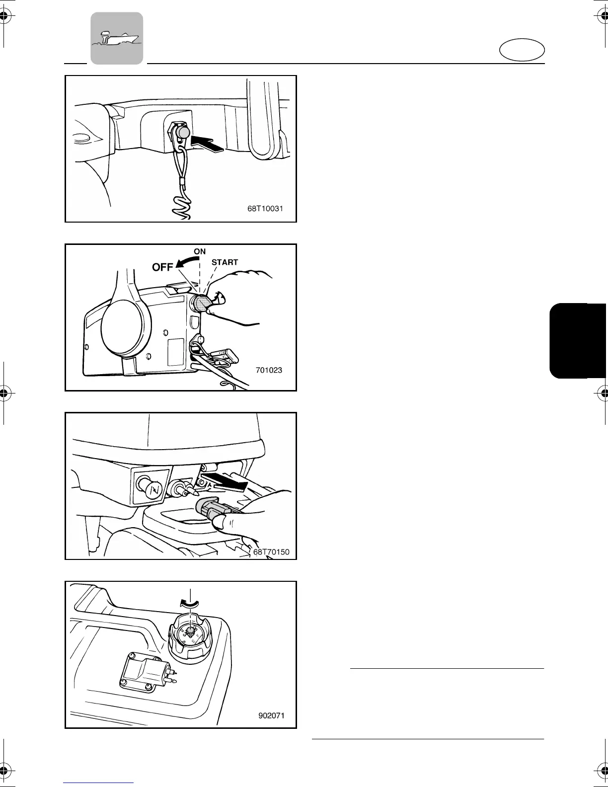 the engine stop lanyard switch (then turning
