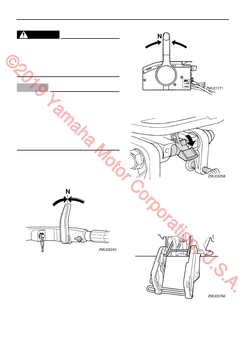 ● Before tilting the outboard motor, stop