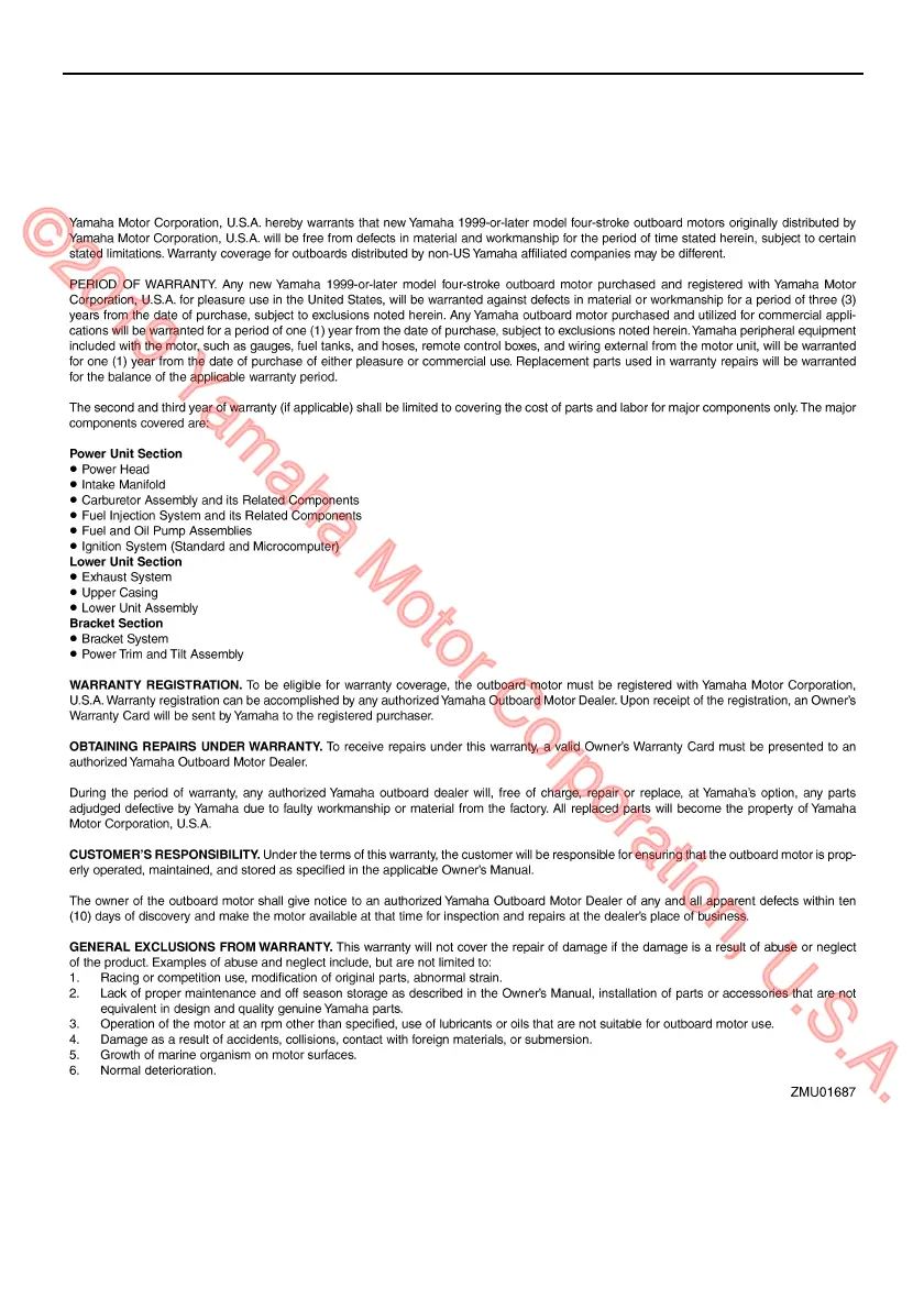 Yamaha F9.9F - Yamaha Motor; Four-Stroke Outboard; Limited Warranty