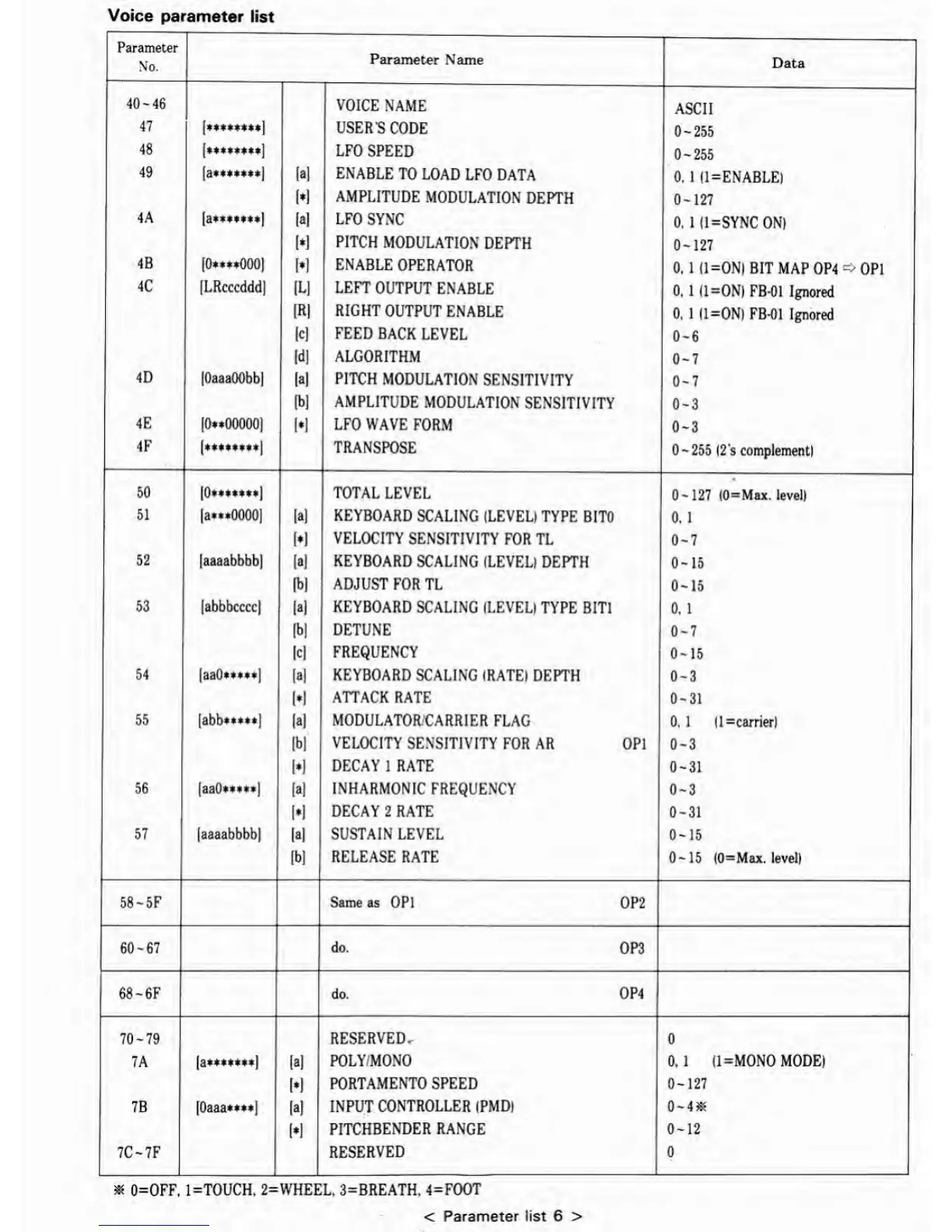 Yamaha FB-01 - Voice Parameter List; Detailed Voice Parameter Reference