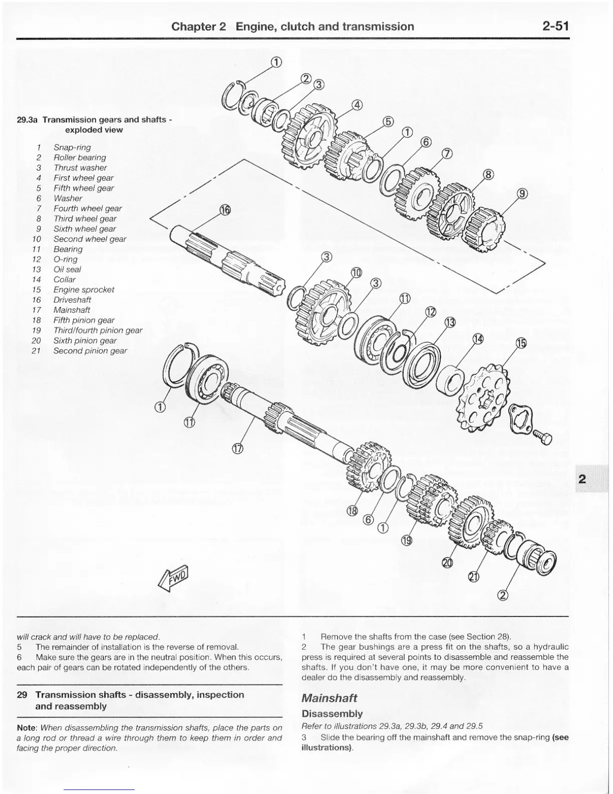Yamaha FJ - Mainshaft Disassembly; Transmission Gears and Shafts - Exploded View