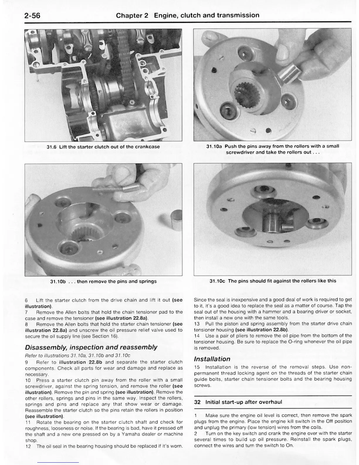 Yamaha FJ - Starter Clutch and Drive Chain Tensioner Disassembly, Inspection and Reassembly; Starter Clutch and Drive Chain Tensioner Installation; Initial Start-Up after Overhaul