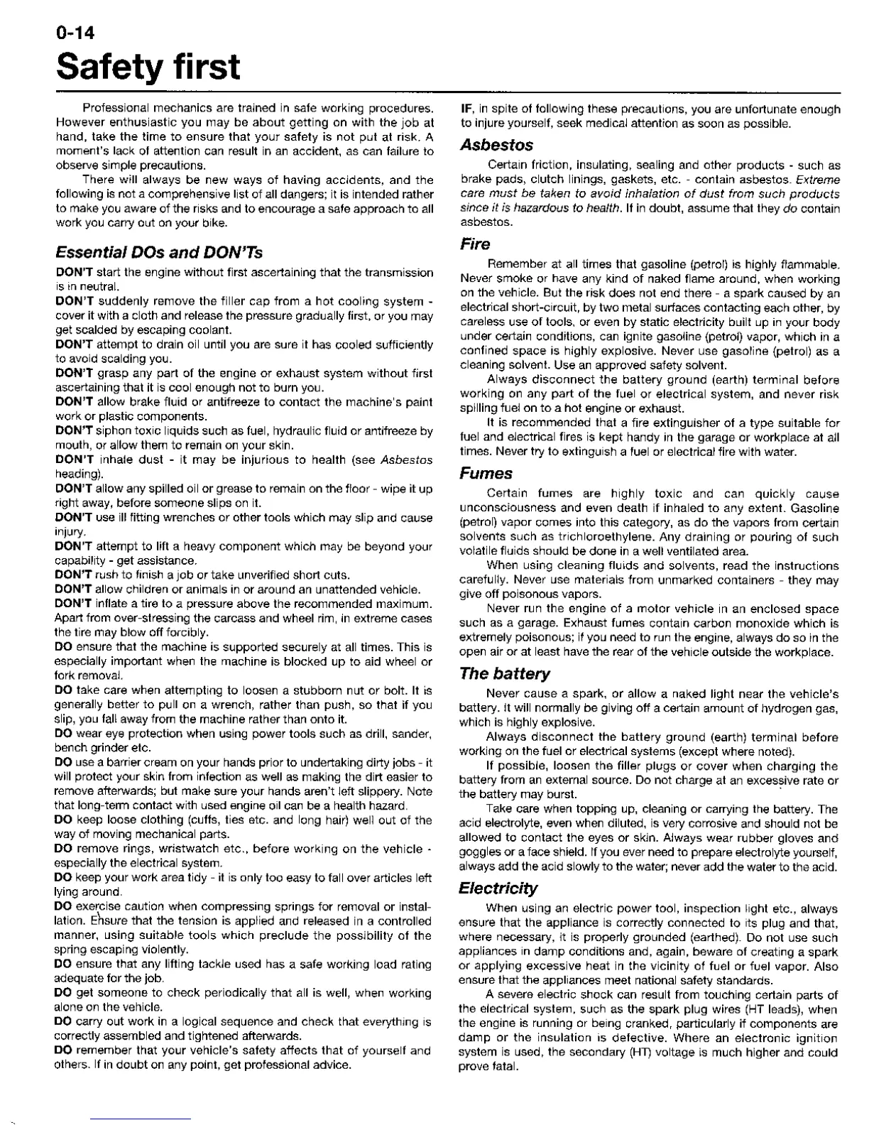Yamaha FJ - Safety First; Essential Dos and Donts; Asbestos; Fire