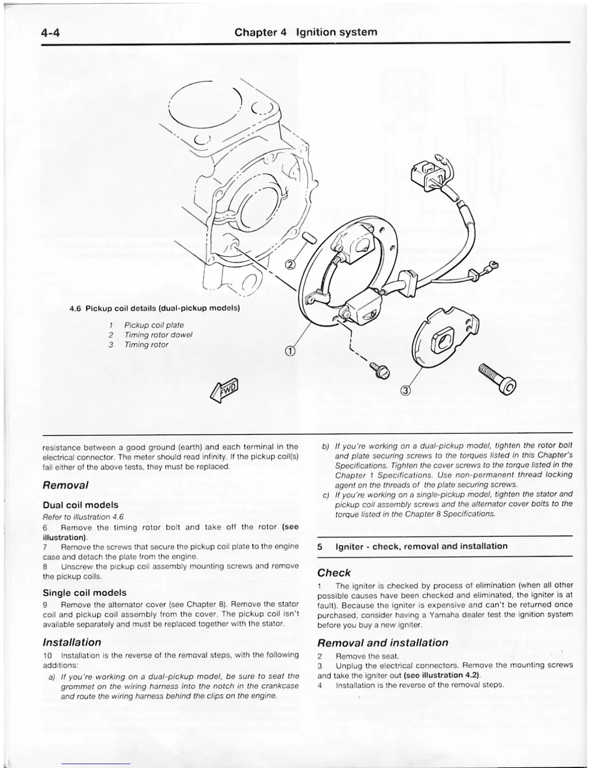 Yamaha FJ - Pickup Coils Removal; Pickup Coils Installation; Igniter Check; Igniter Removal and Installation