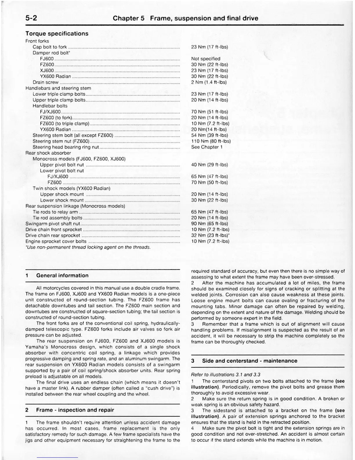 Yamaha FJ - Frame, Suspension and Final Drive General Information; Frame - Inspection and Repair; Side and Centerstand - Maintenance