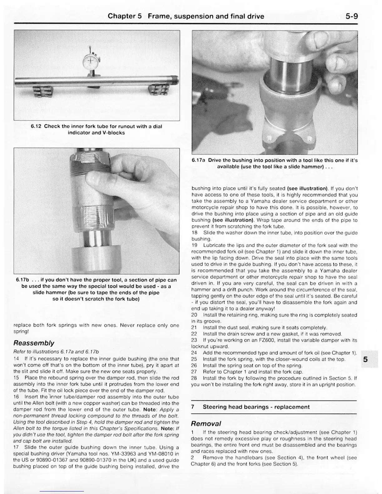 Yamaha FJ - Forks Reassembly; Steering Head Bearings - Replacement; Steering Head Bearings Removal