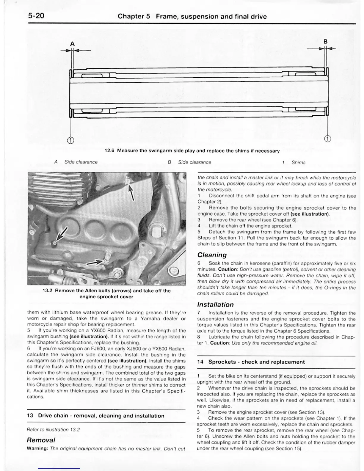 Yamaha FJ - Drive Chain Removal; Drive Chain Cleaning; Drive Chain Installation; Sprockets - Check and Replacement