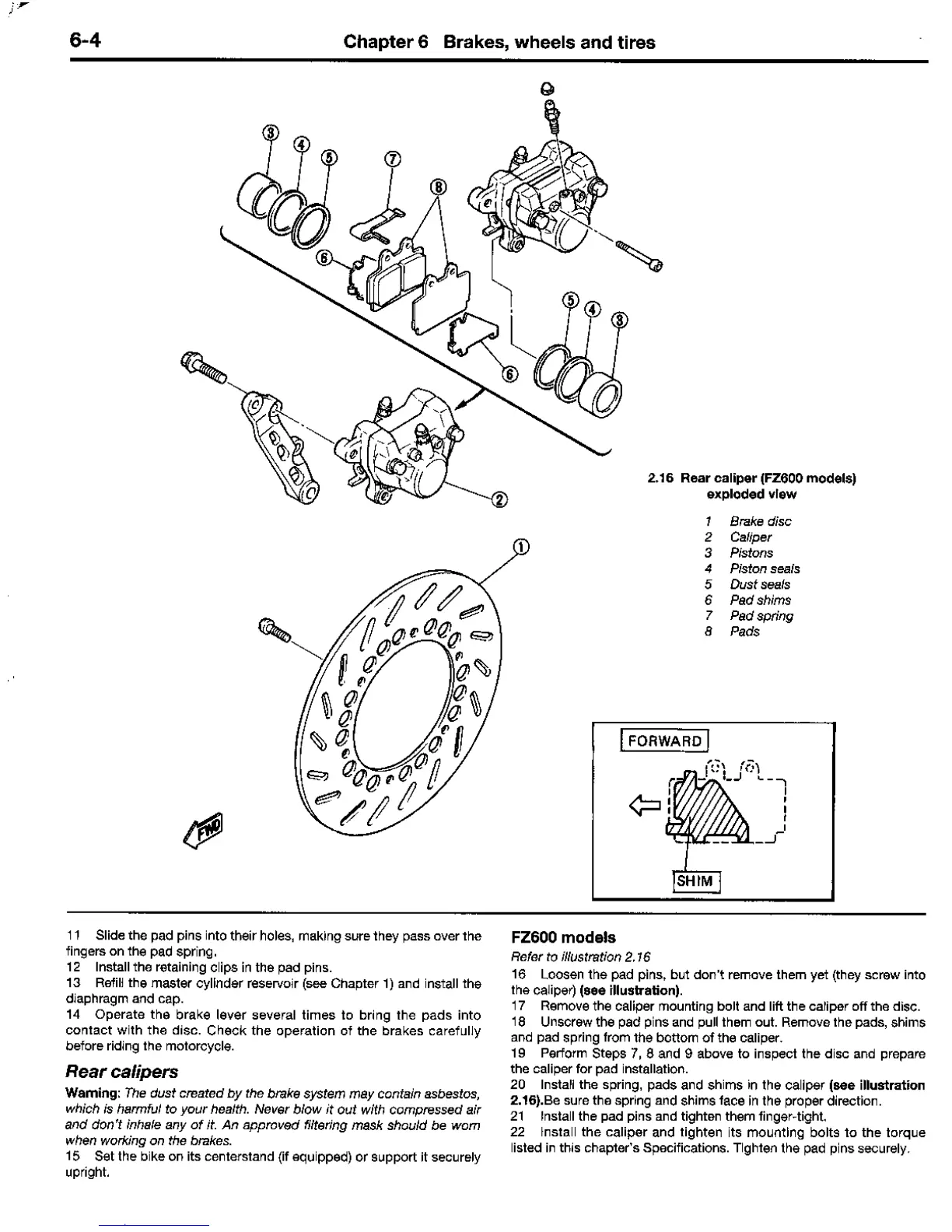 Yamaha FJ - Rear Caliper Exploded View; Rear Calipers
