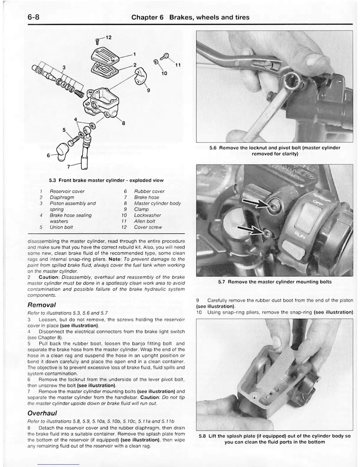 Yamaha FJ - Front Brake Master Cylinder Removal; Front Brake Master Cylinder Overhaul; Front Brake Master Cylinder - Exploded View