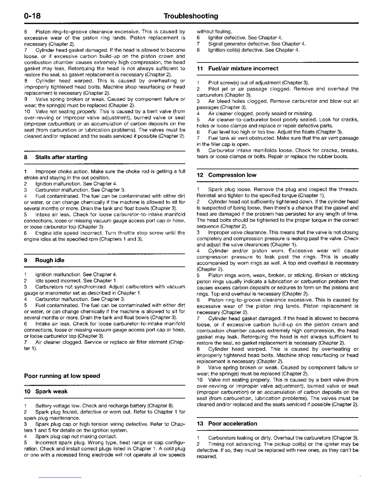Yamaha FJ - Poor Running at Low Speed; Stalls after Starting; Rough Idle; Spark Weak