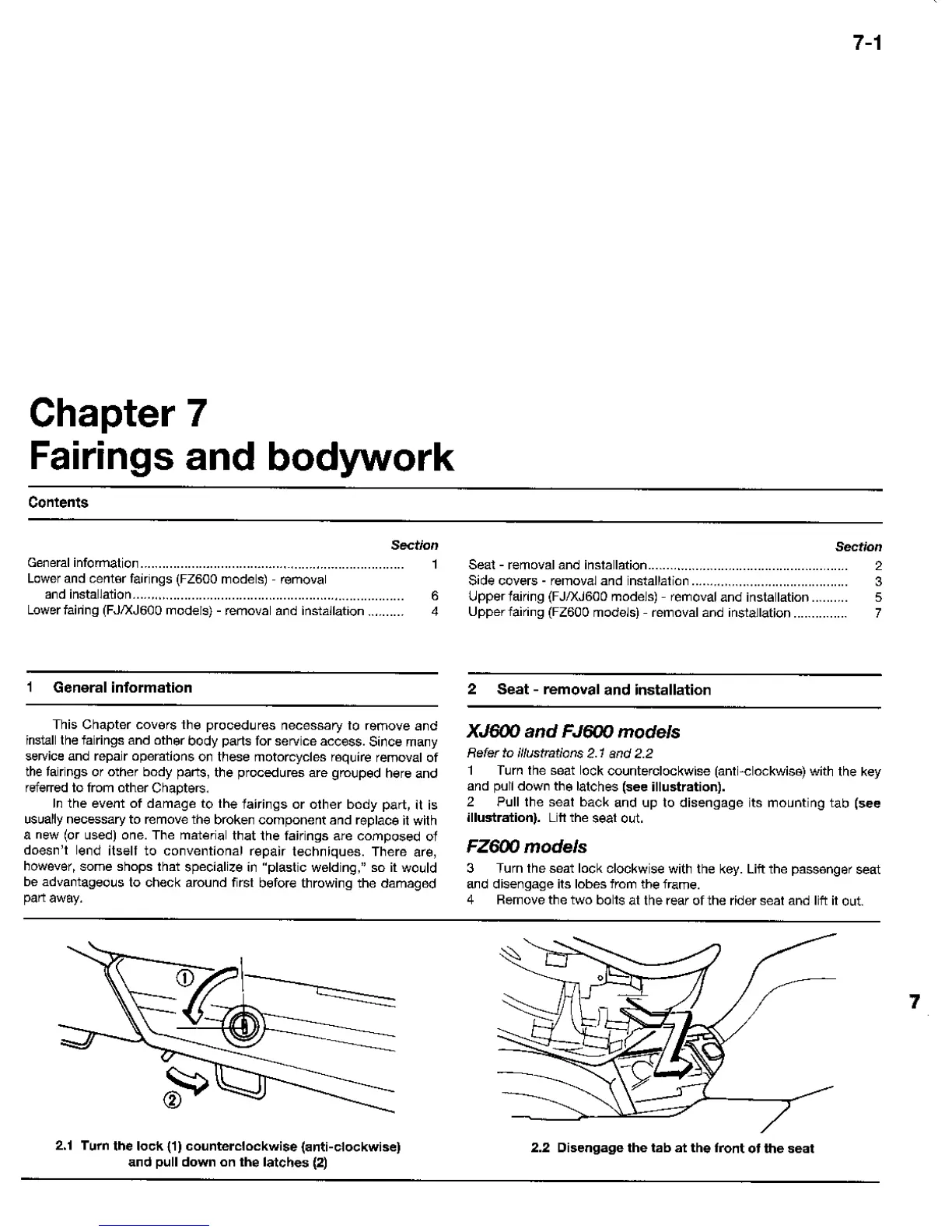 Yamaha FJ - Fairings and Bodywork; Seat Removal and Installation