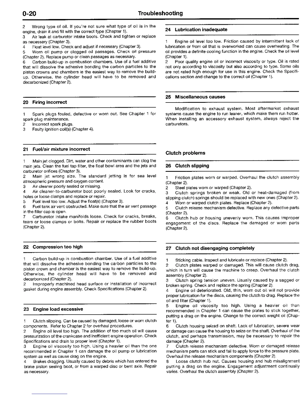 Yamaha FJ - Clutch Problems; Compression too High; Engine Load Excessive; Clutch Slipping