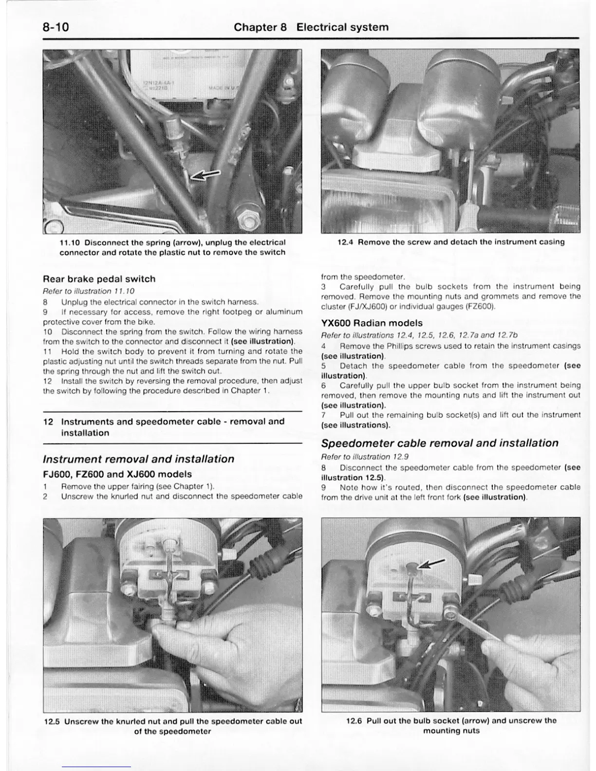 Yamaha FJ - Instruments and Speedometer Cable Removal and Installation; Rear Brake Pedal Switch