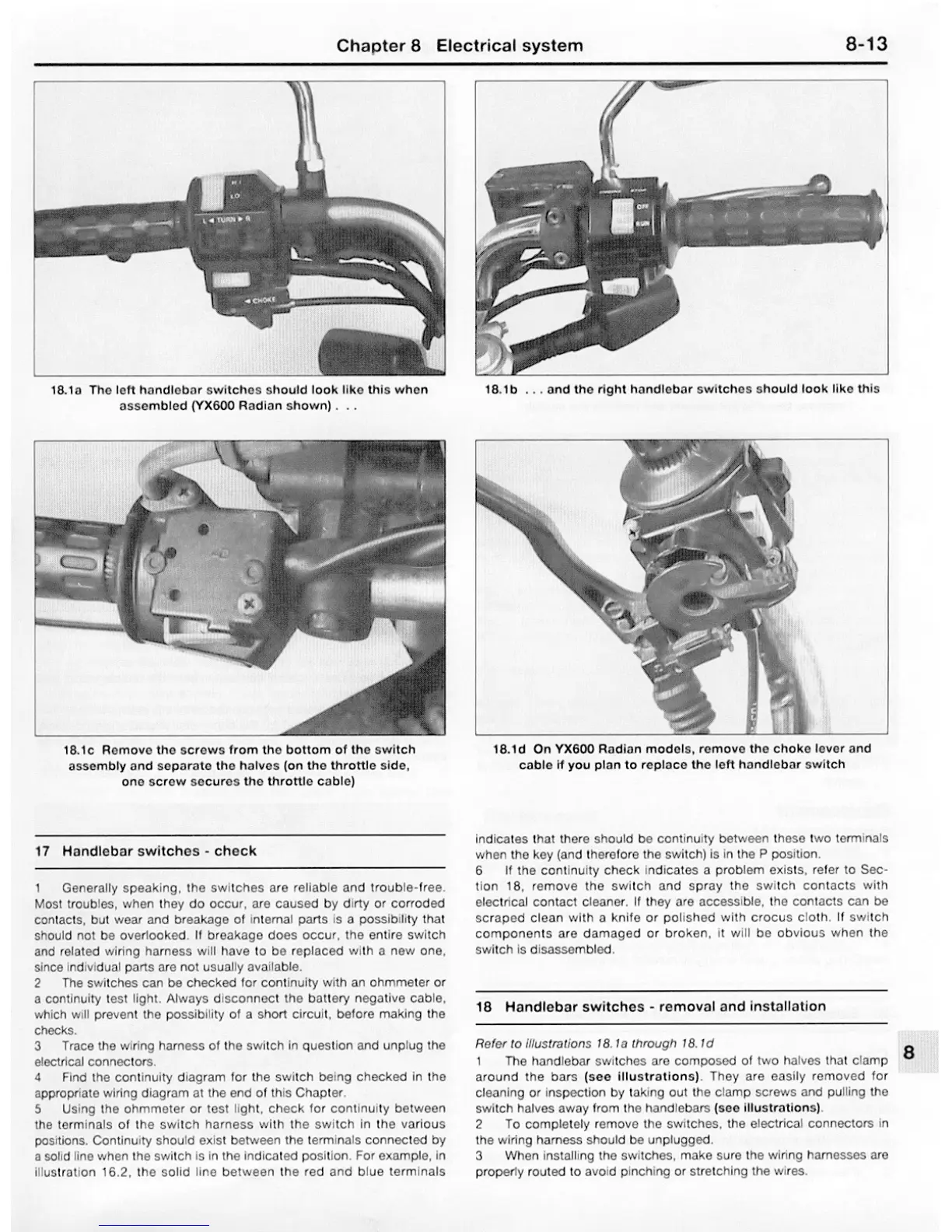 Yamaha FJ - Handlebar Switches Check; Handlebar Switches Removal and Installation