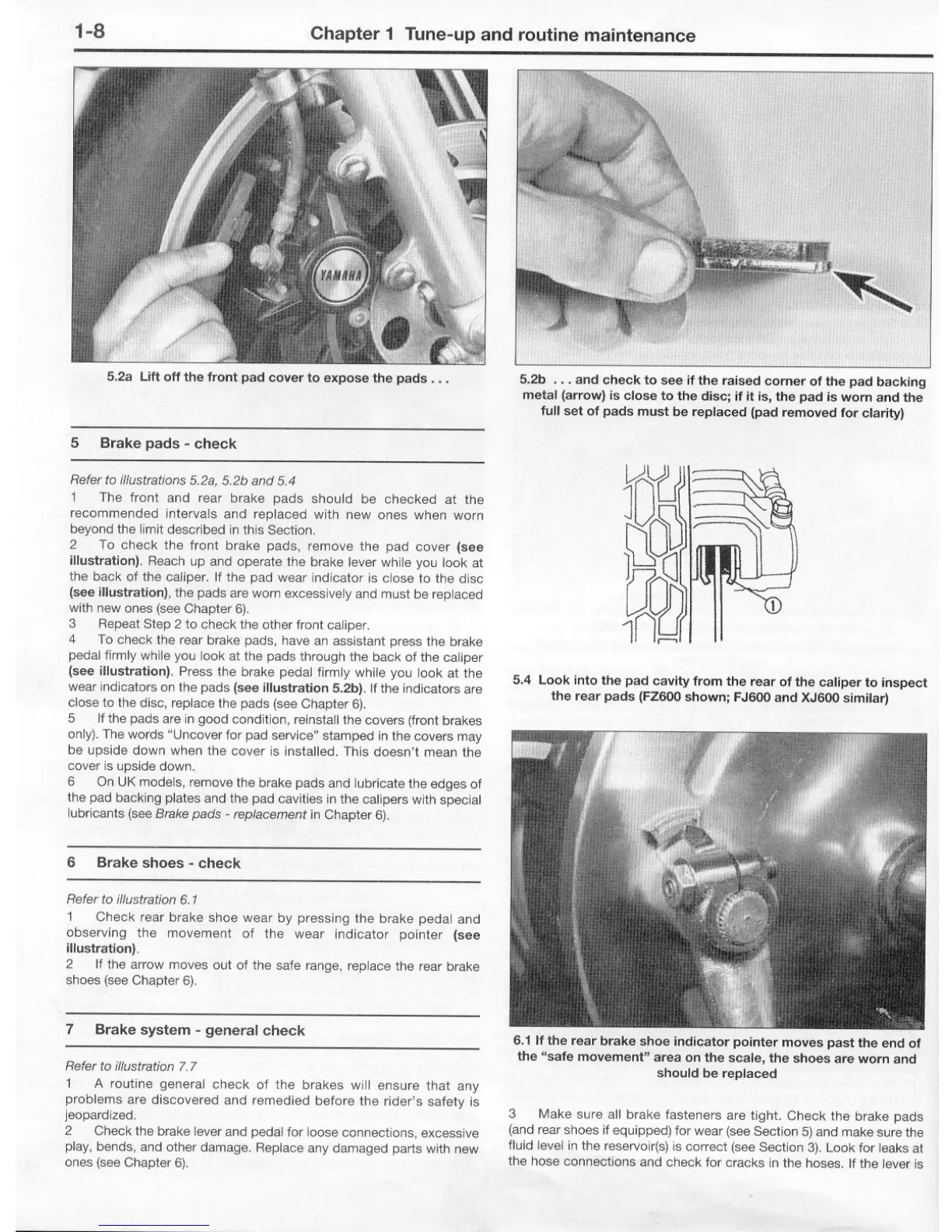 Yamaha FJ - Brake Pads - Check; Brake Shoes - Check; Brake System - General Check