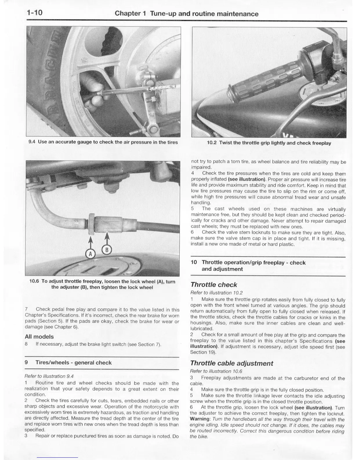 Yamaha FJ - Tires;Wheels - General Check; Throttle Operation;Grip Freeplay - Check and Adjustment; Throttle Check; Throttle Cable Adjustment