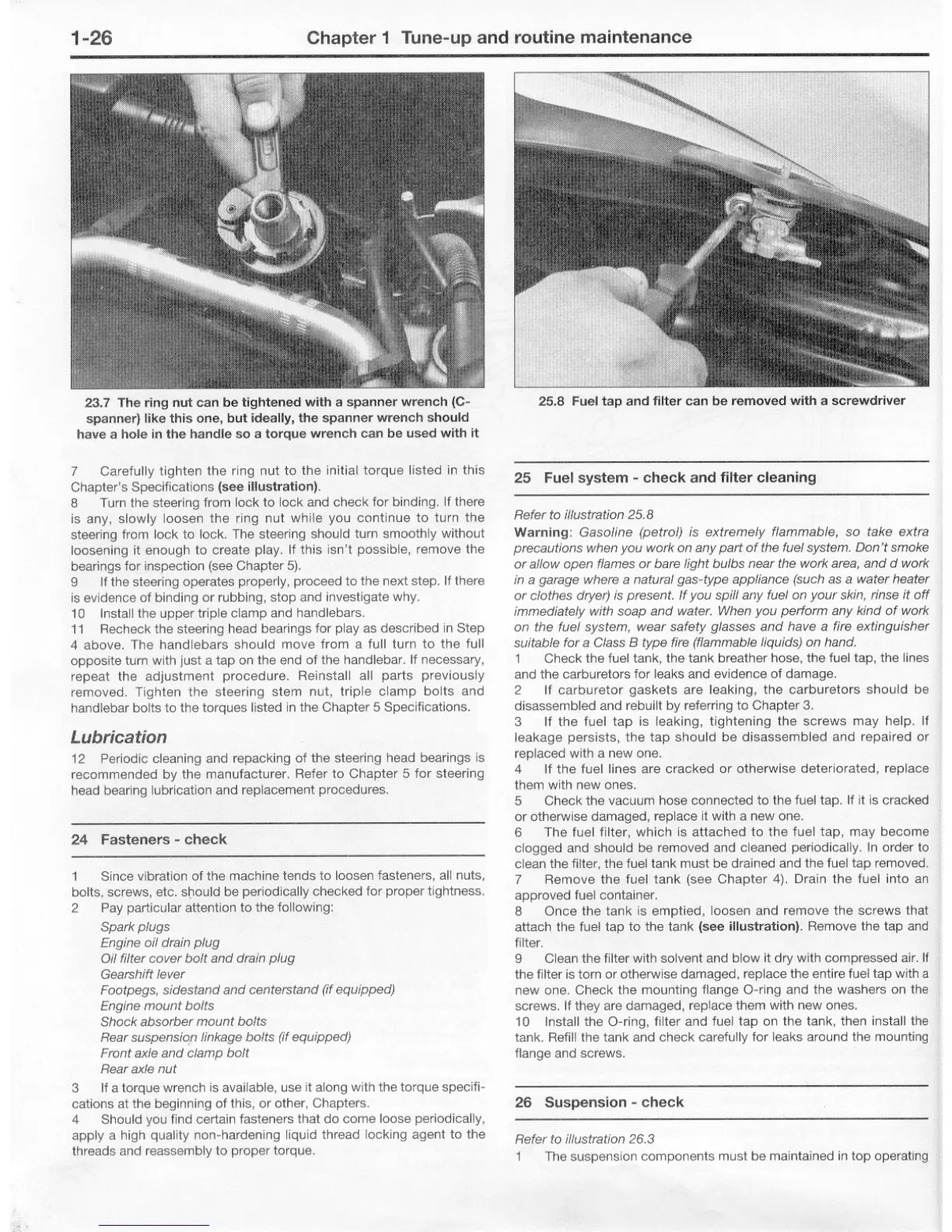 Yamaha FJ - Fasteners - Check; Fuel System - Check and Filter Cleaning; Suspension - Check