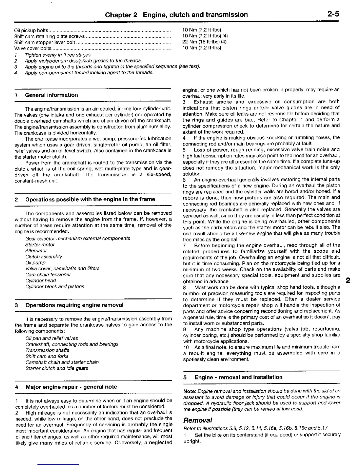 Yamaha FJ - General Information; Operations Possible with the Engine in the Frame; Operations Requiring Engine Removal; Engine - Removal and Installation