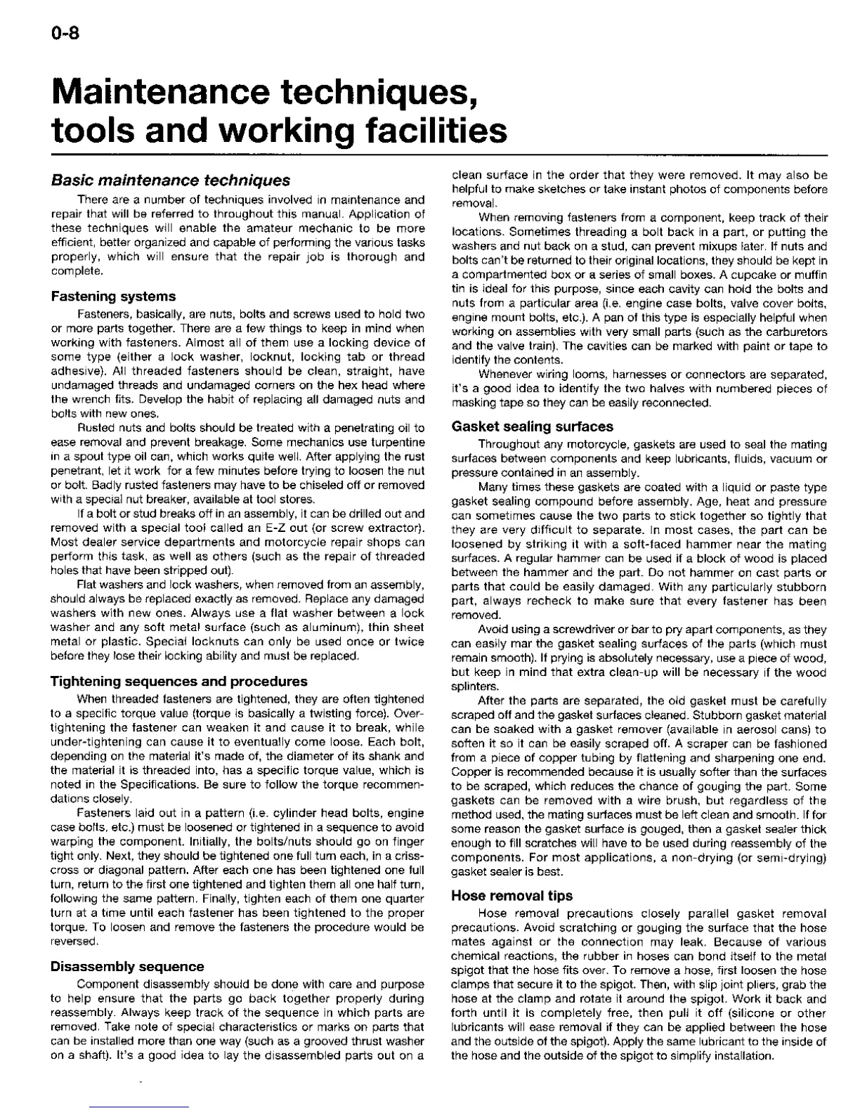 Yamaha FJ - Maintenance Techniques, Tools and Working Facilities; Fastening Systems; Tightening Sequences and Procedures; Gasket Sealing Surfaces