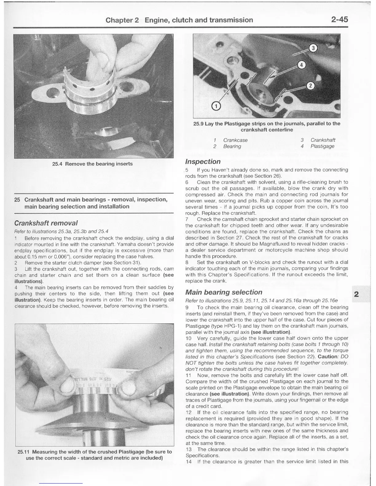 Yamaha FJ - Crankshaft Removal; Crankshaft Inspection; Crankshaft Main Bearing Selection