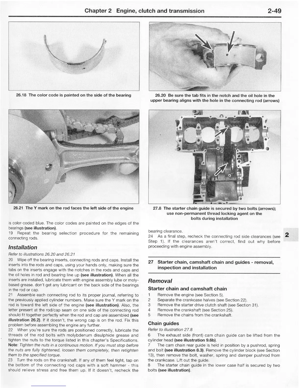 Yamaha FJ - Connecting Rods and Bearings Installation; Starter Chain and Camshaft Chain Removal; Chain Guides