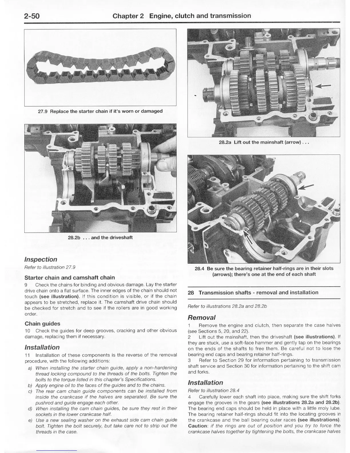 Yamaha FJ - Starter Chain and Camshaft Chain Inspection; Chain Guides Installation; Transmission Shafts Removal; Transmission Shafts Installation