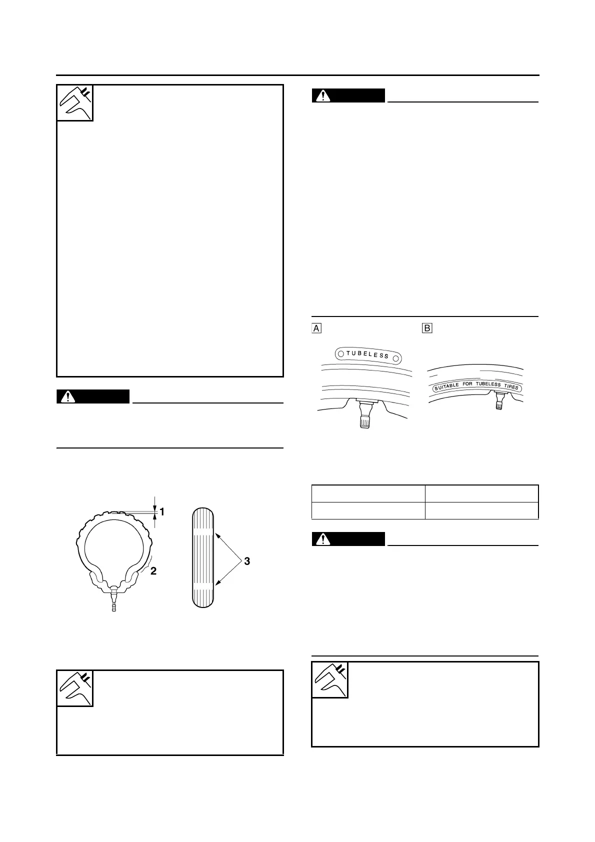 • Do not use a tubeless tire on a wheel de-