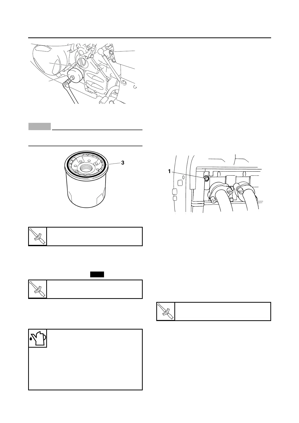 b. Lubricate the O-ring “3” of a new oil filter car-