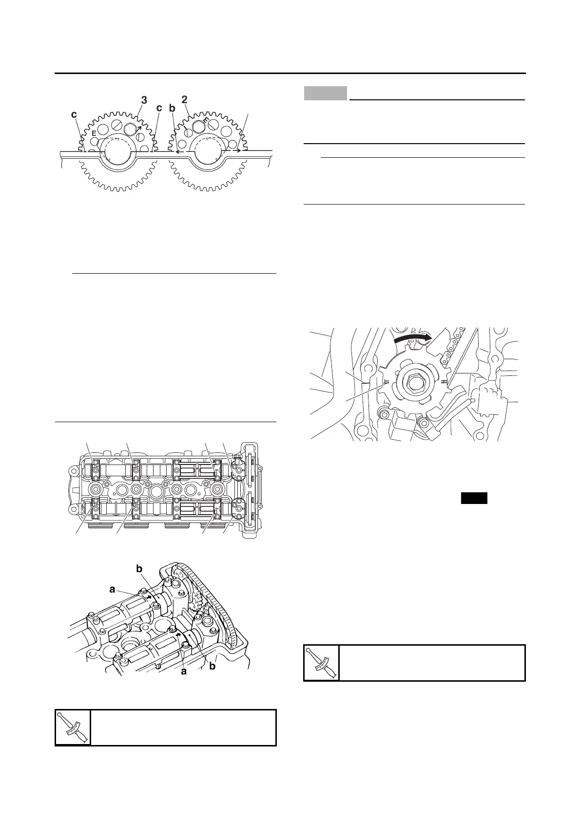 • Make sure the holes “b” in the camshafts are