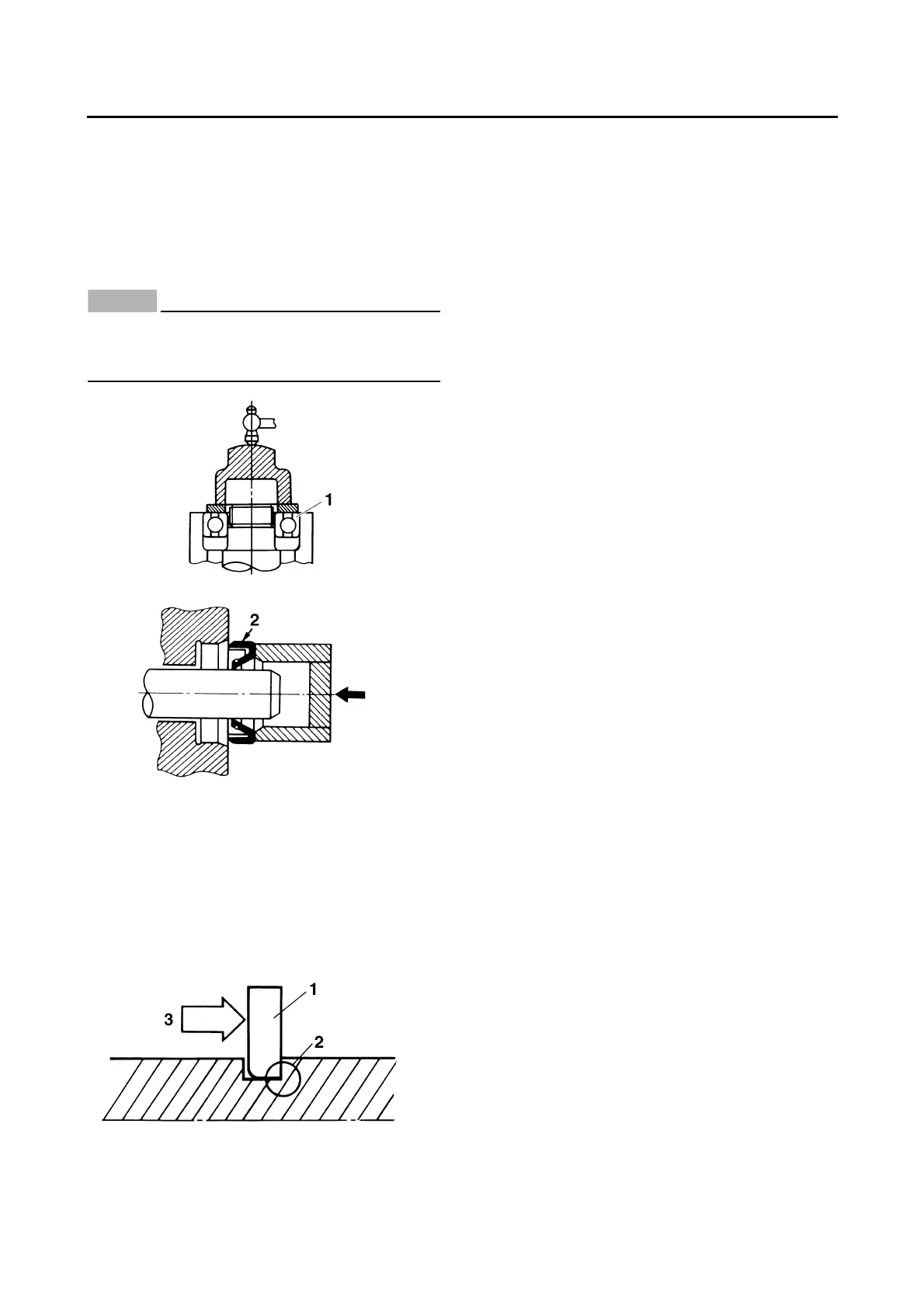 Install bearings “1” and oil seals “2” so that the