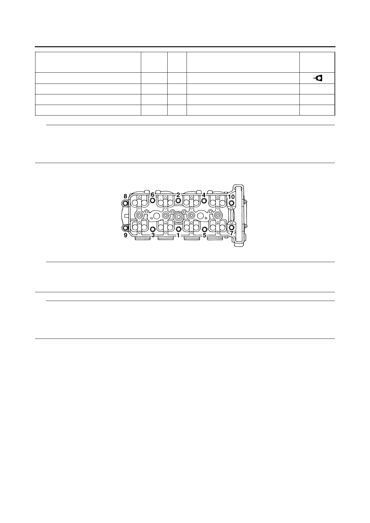 Tighten the cylinder head bolts to 25 Nm (2.5 m·kg, 18 ft·lb) in the proper tightening sequence, loosen
