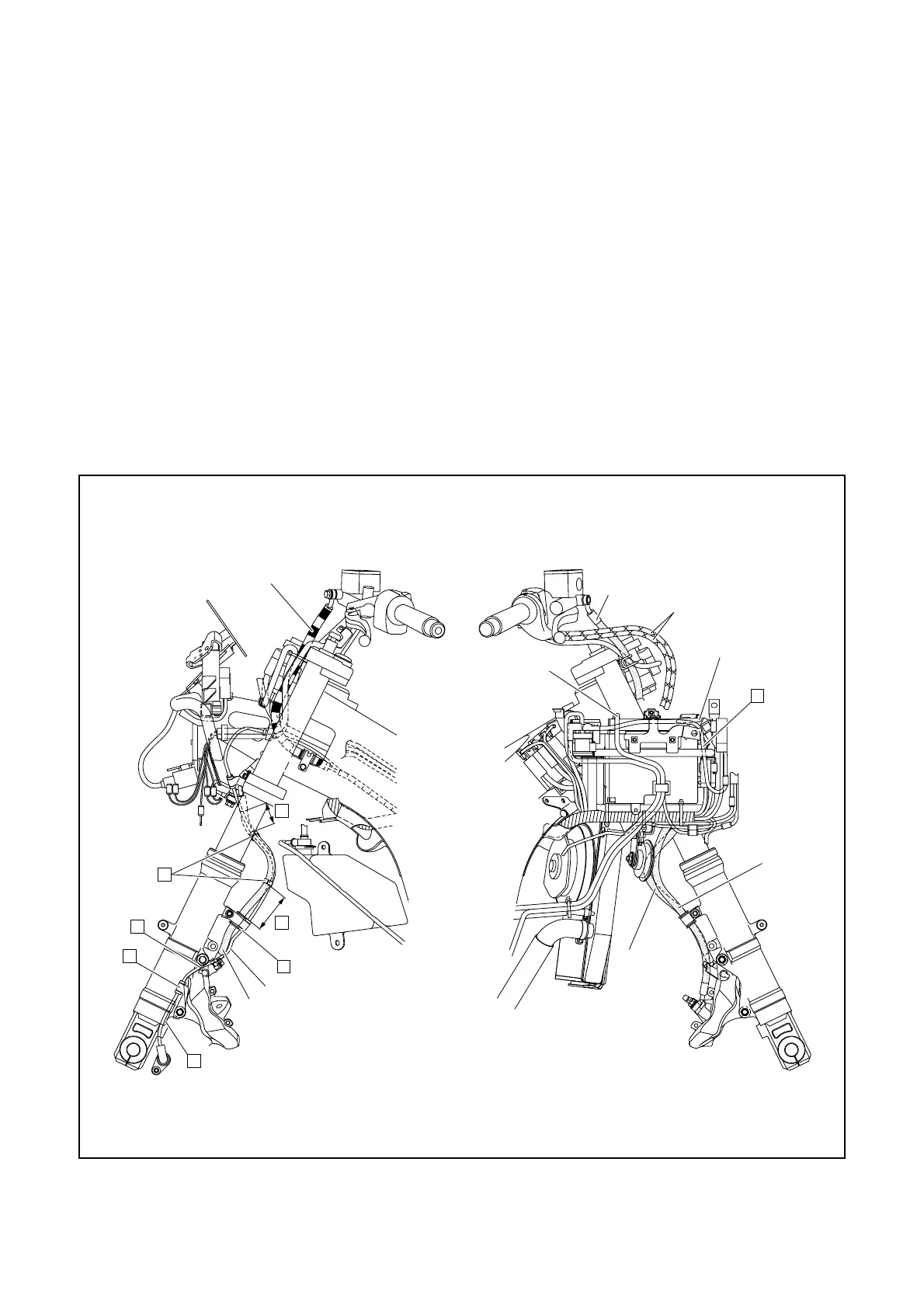 (G) Route the front wheel sensor lead between the left front brake caliper and