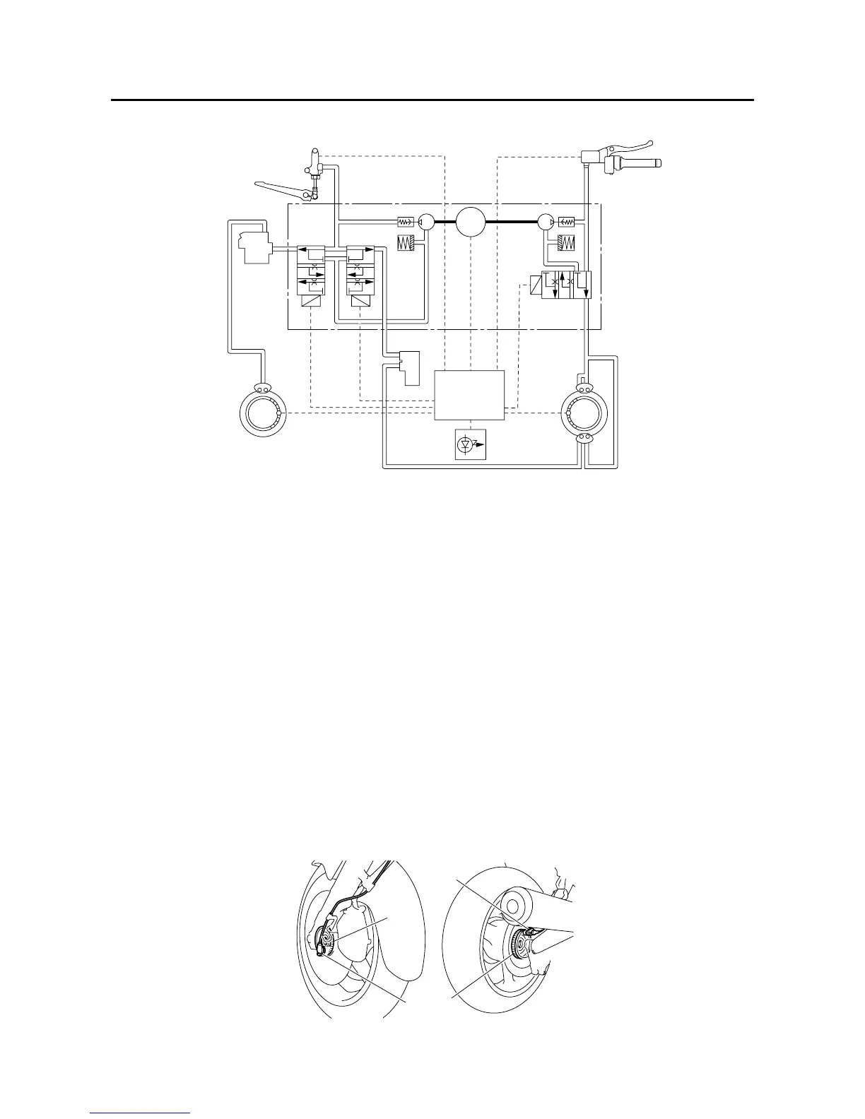 Wheel sensors “1” detect the wheel speed and transmit the rotation signal to the ABS ECU.