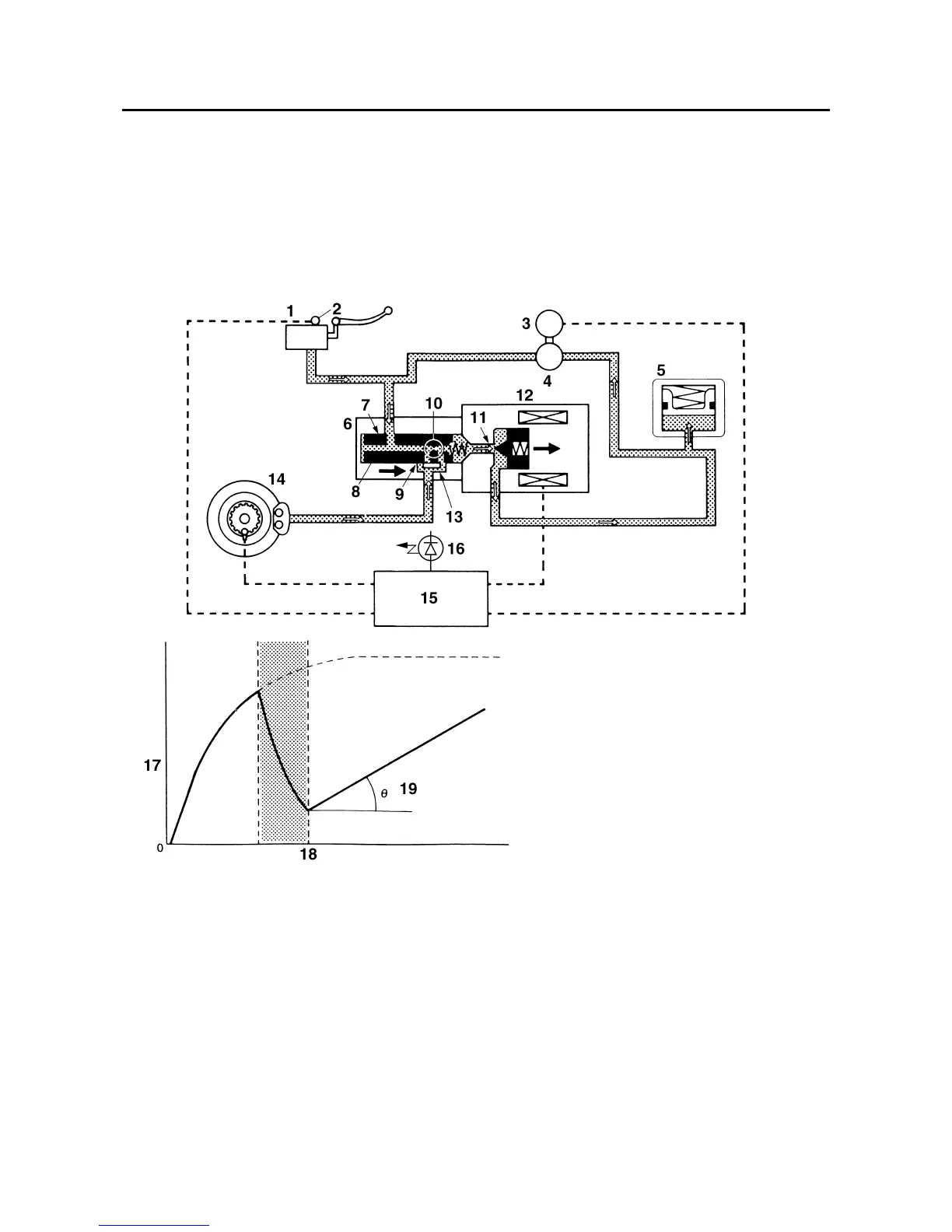 is restricted by the orifice “10” and the brake fluid is sent to the brake caliper via port C “13” and to