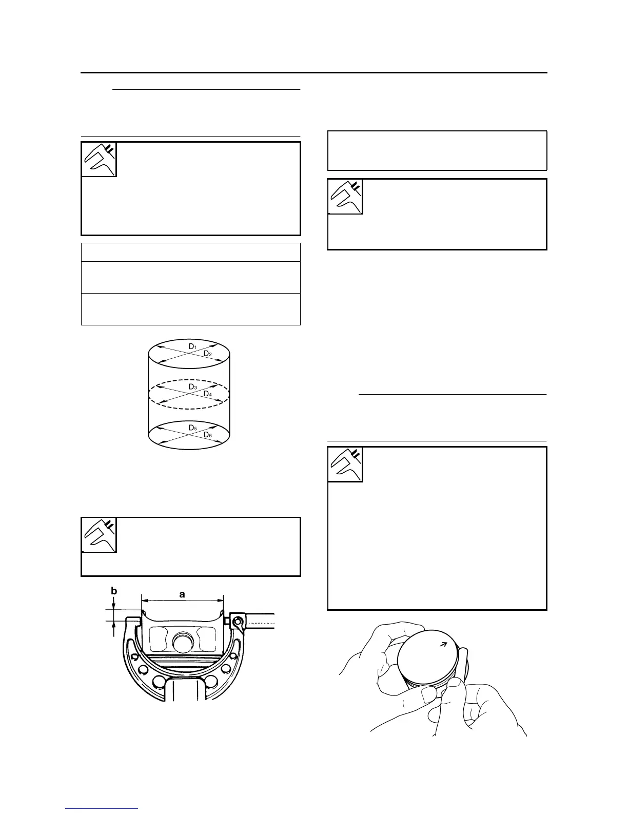 c. Measure piston skirt diameter “D” “a” with the