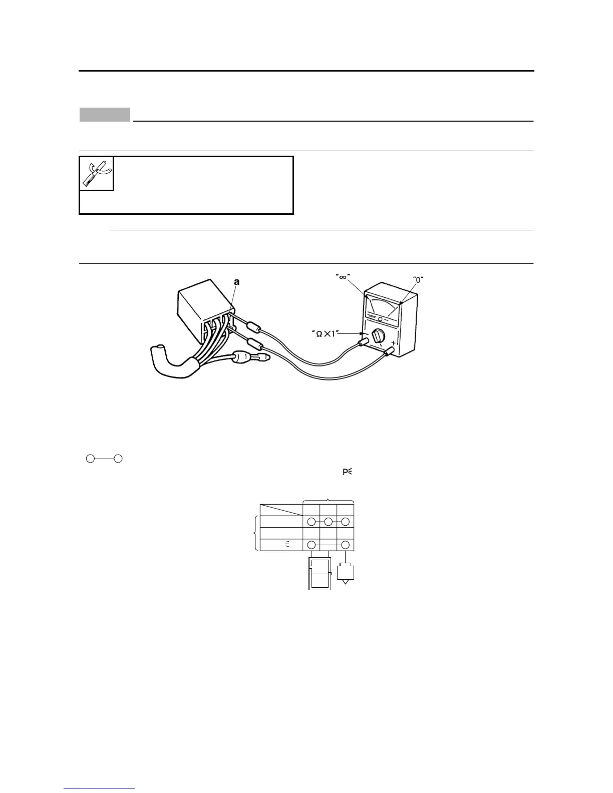 • Before checking for continuity, set the pocket tester to “0” and to the “Ω × 1” range.