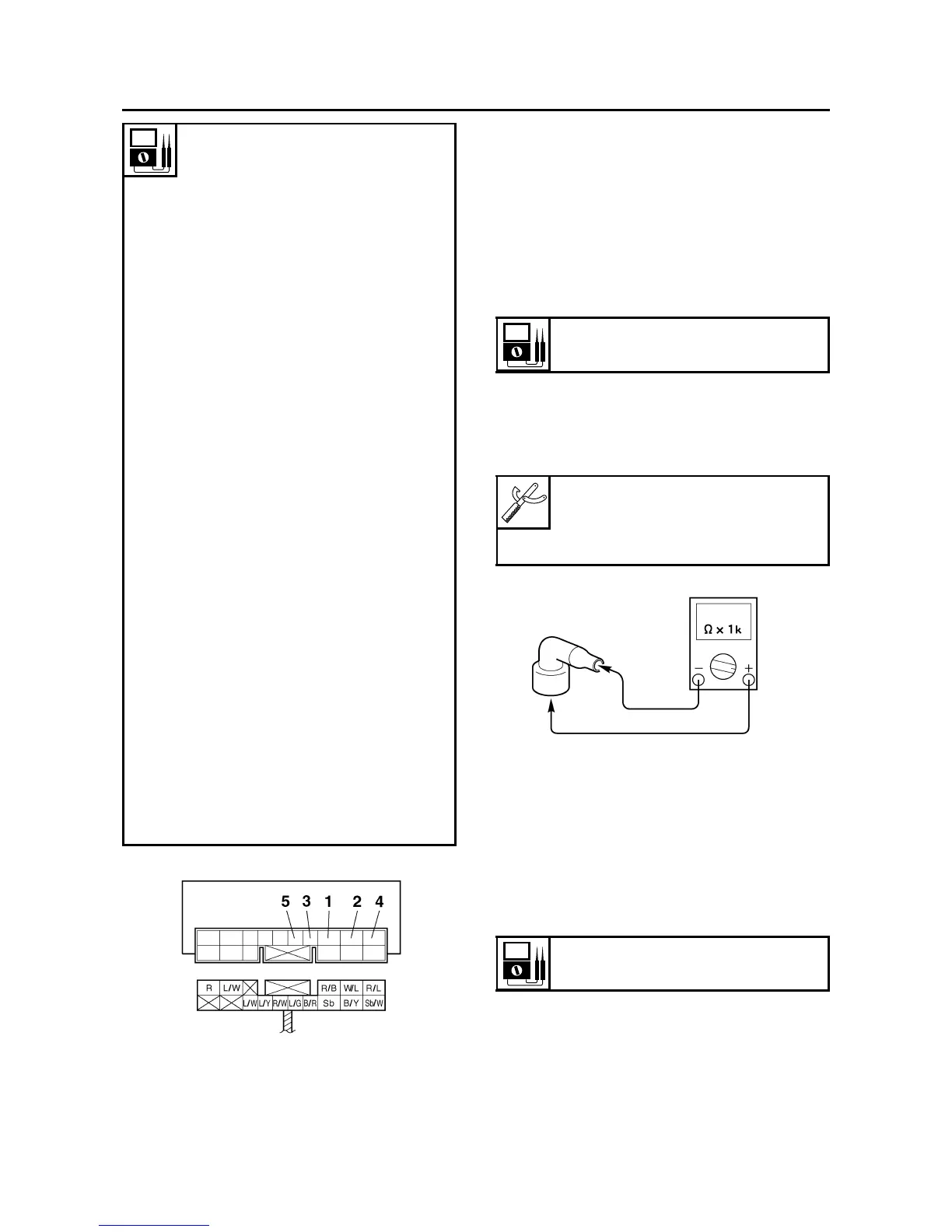 b. Connect the pocket tester (Ω × 1) to the igni-