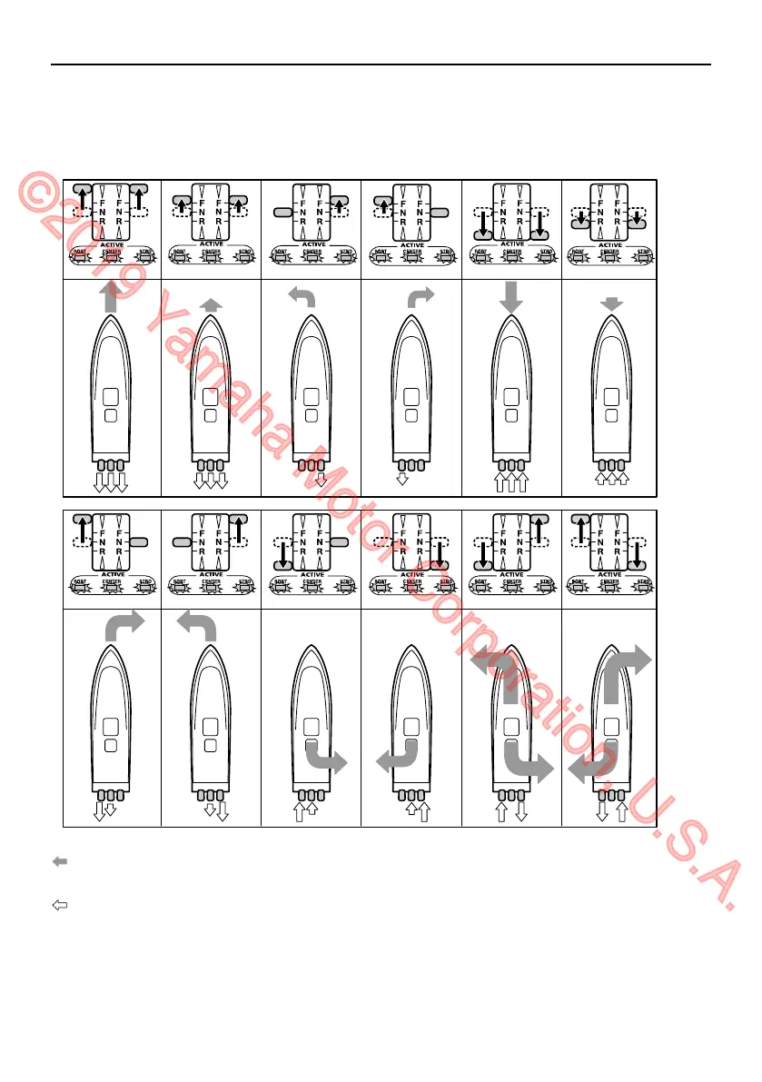 The illustrations below indicate the boat direction when operating the three outboard motors.