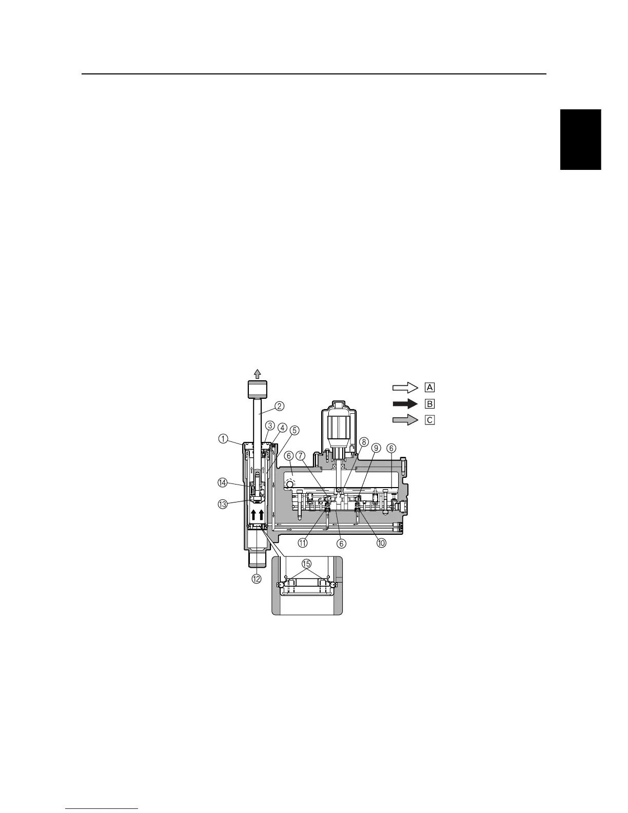 down-main valve, and back to the gear pump. In addition, fluid is also sucked in through the reser-