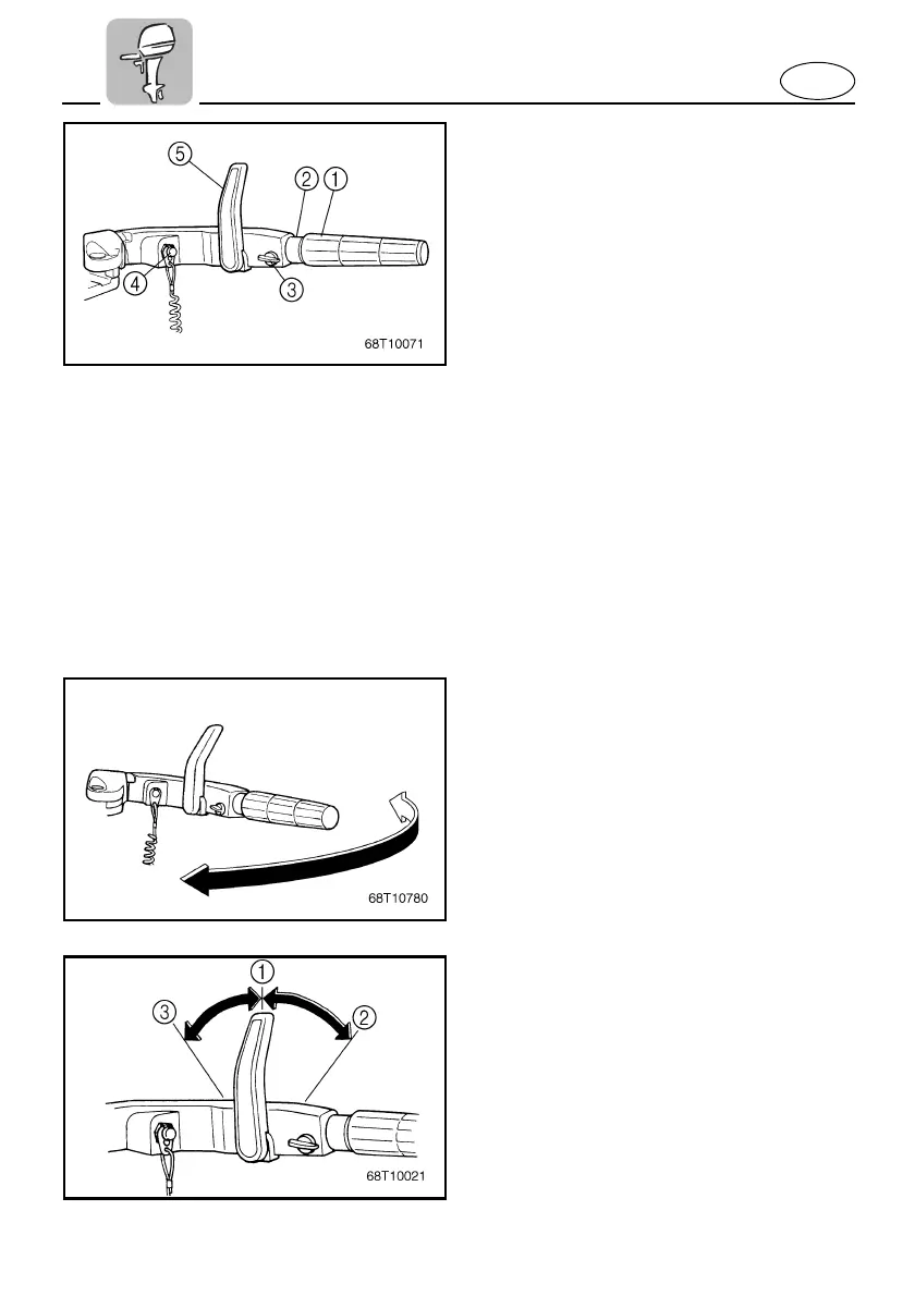 Moving the tiller handle sideways to adjust
