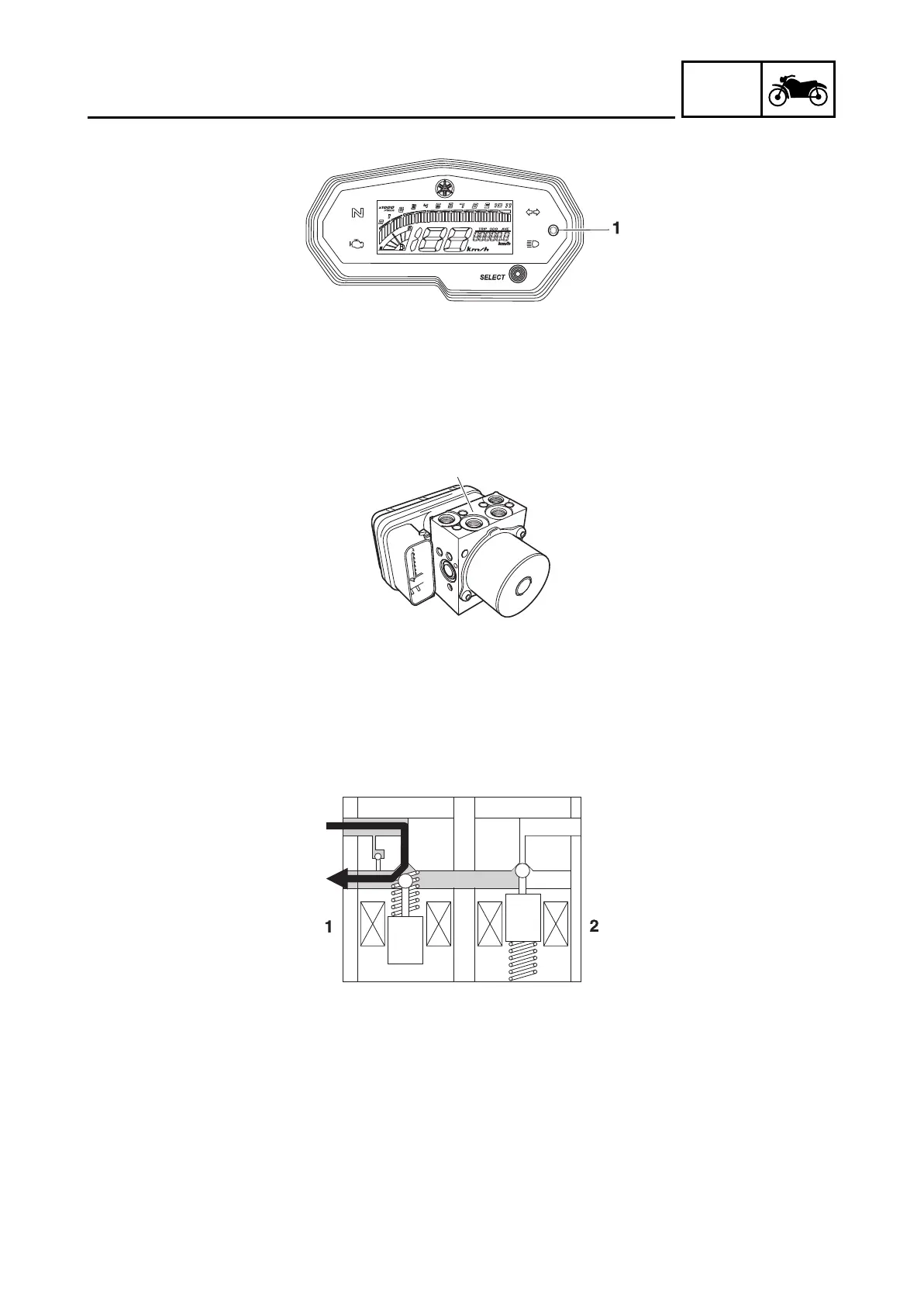 2. When the ABS is activated, the inlet solenoid valve “1” closes and the outlet solenoid valve “2” opens