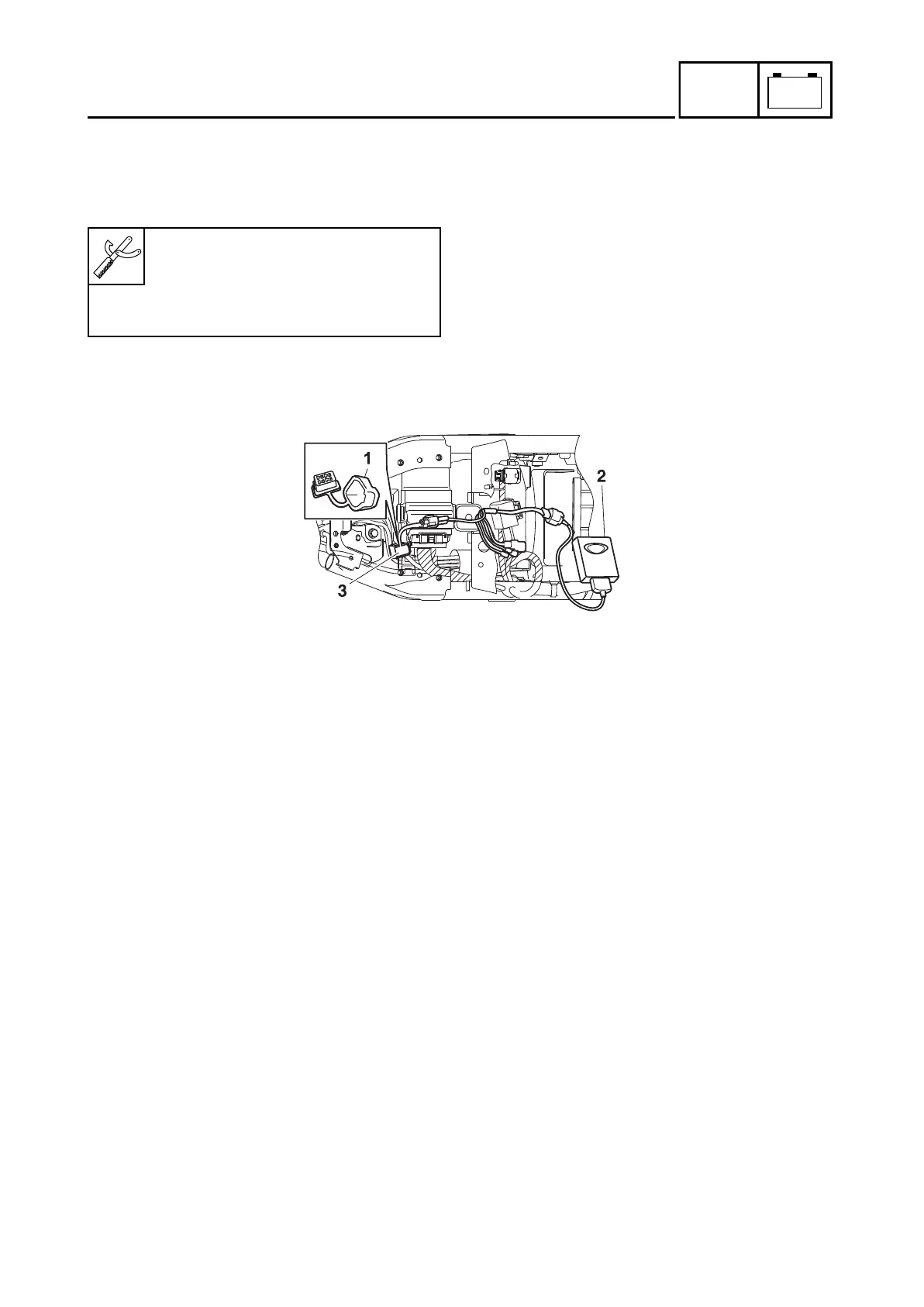 Remove the protective cap “1”, and then connect the Yamaha diagnostic tool “2” to the ABS Coupler