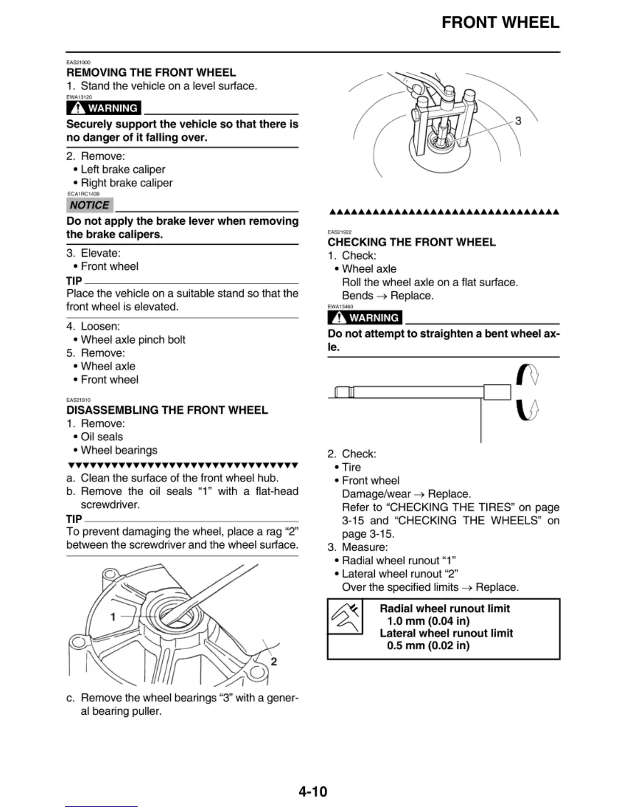 c. Remove the wheel bearings "3'' with a gener-