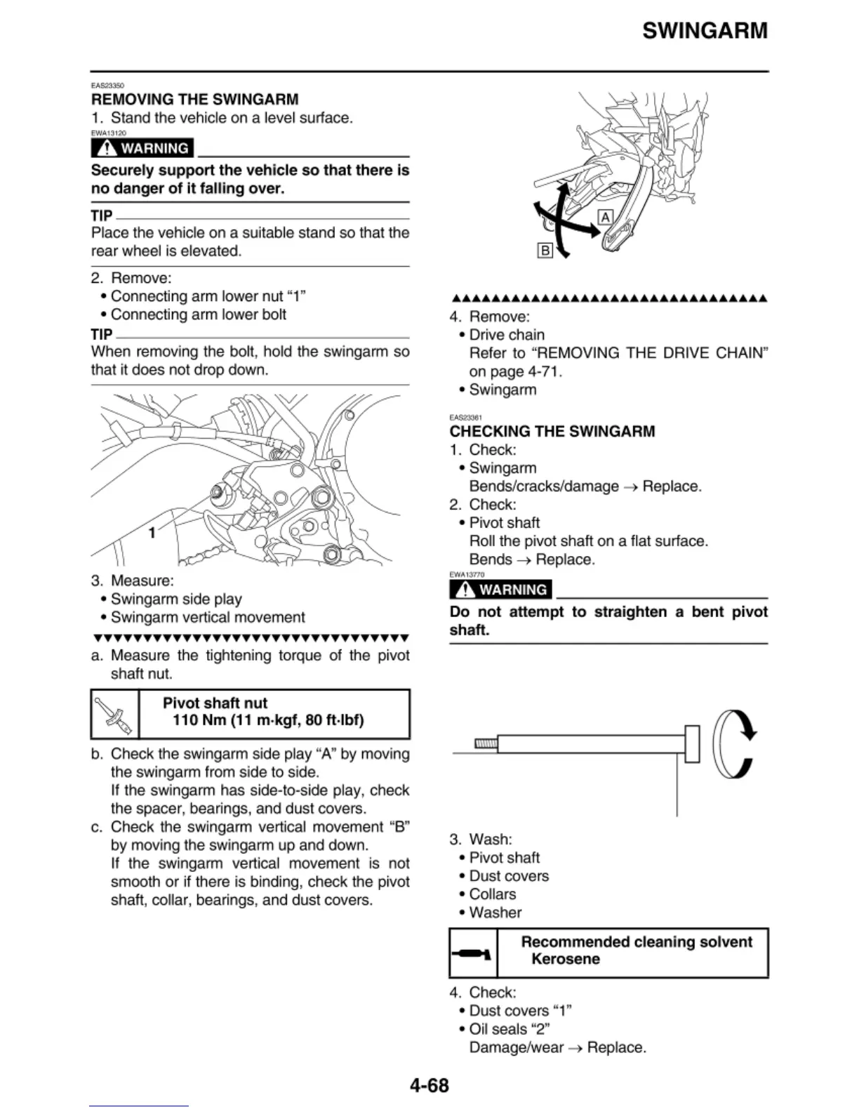 the swingarm from side to side.