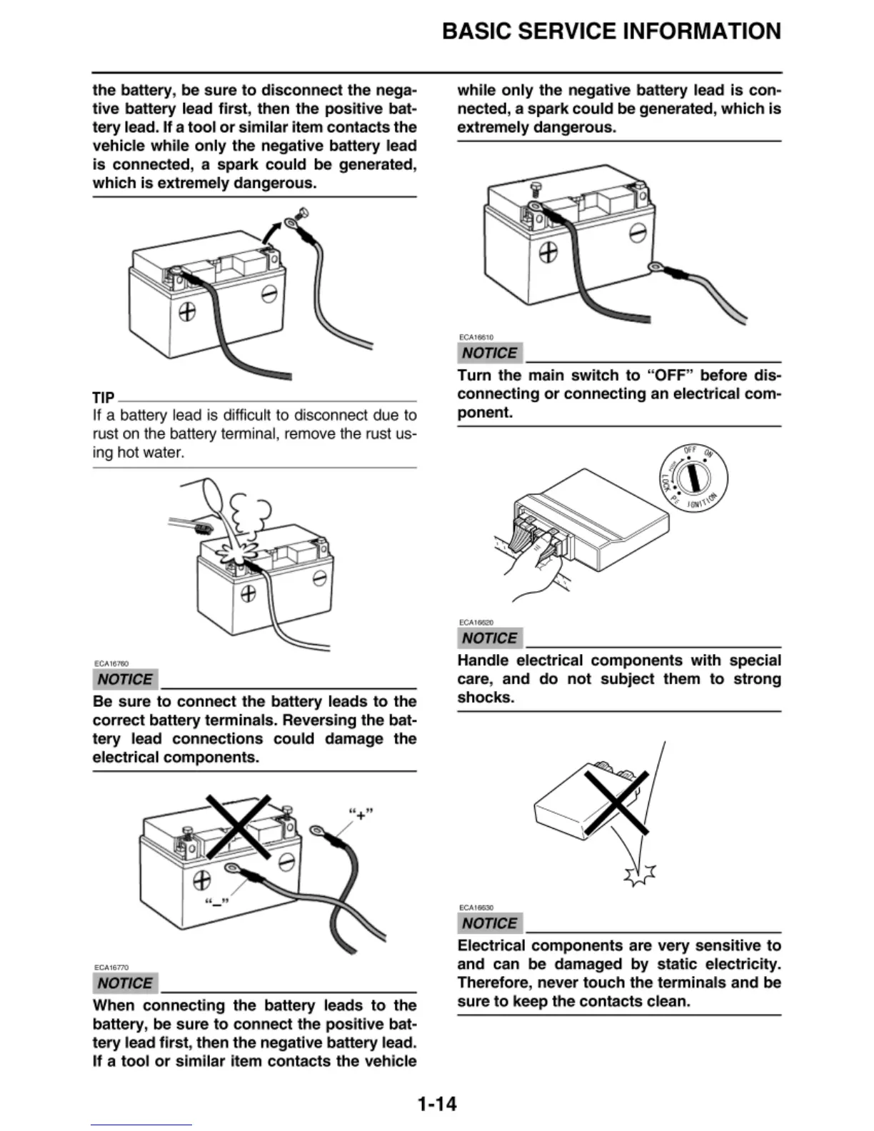 tery lead connections could damage the