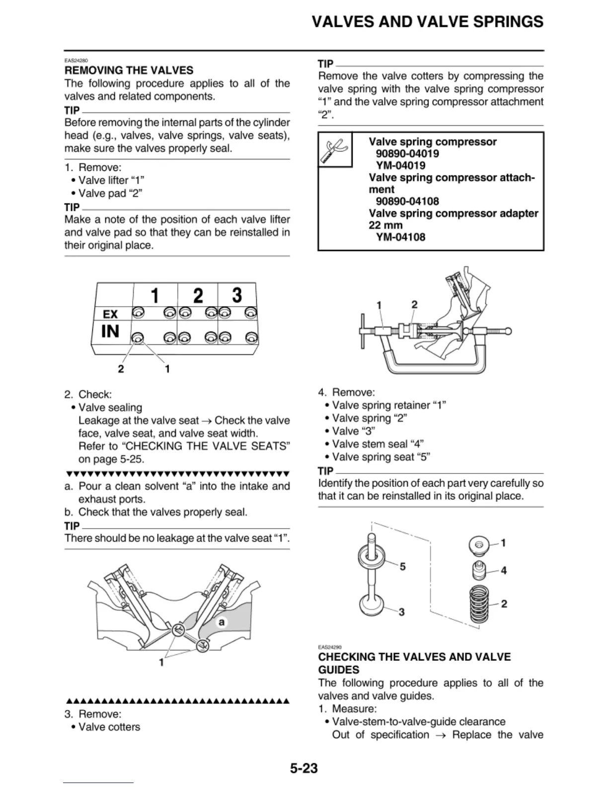 and valve pad so that they can be reinstalled in
