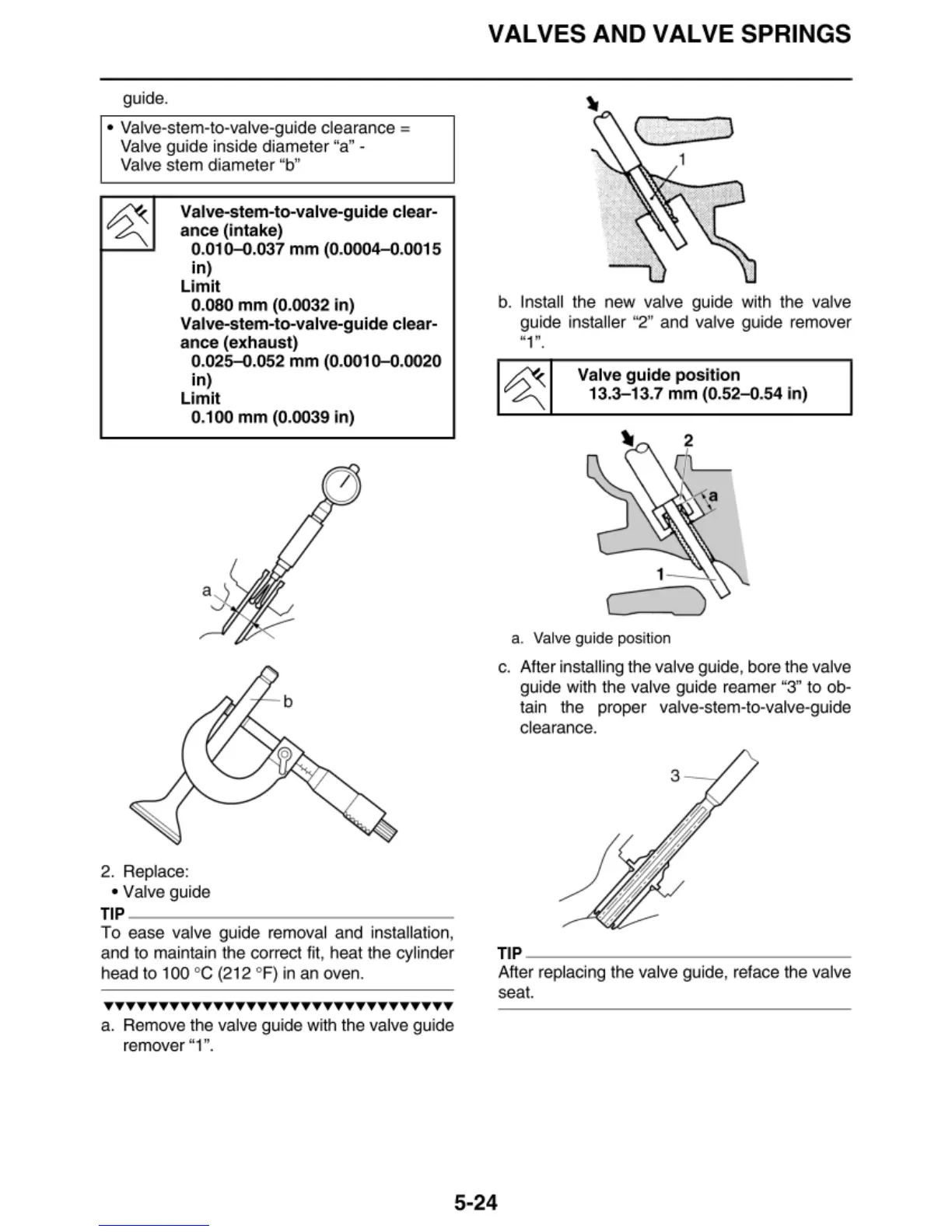 Valve guide inside diameter "a" ·