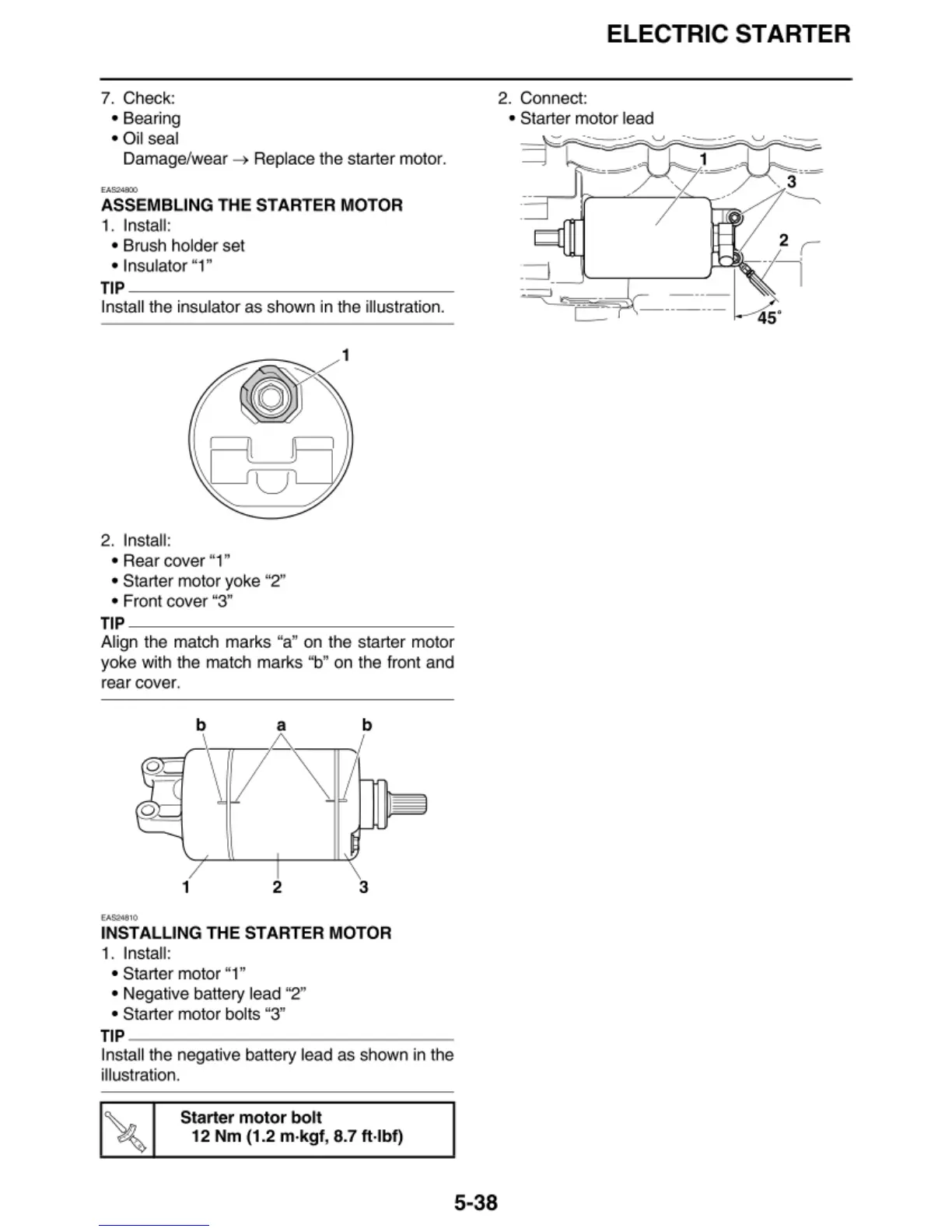 INSTALLING THE STARTER MOTOR