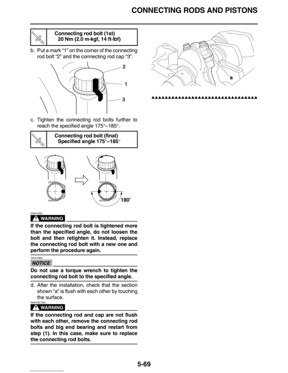 c. Tighten the connecting rod bolts further to