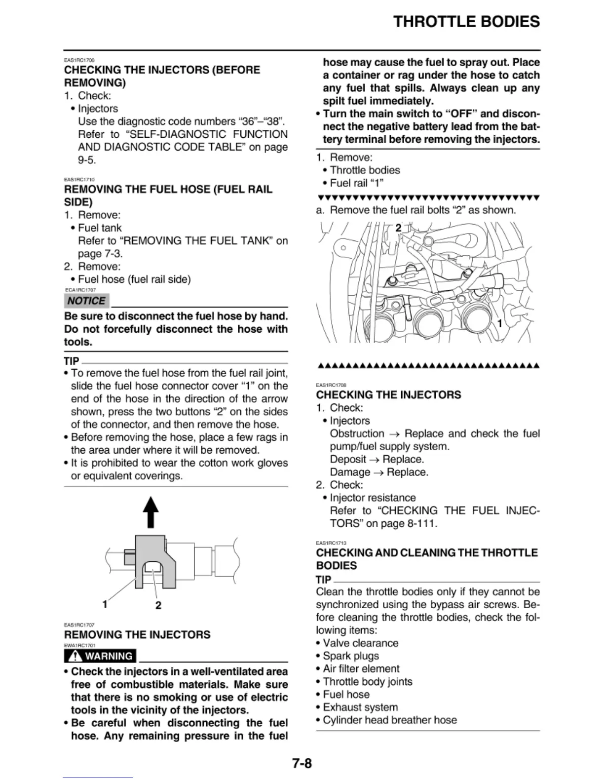 REMOVING THE FUEL HOSE (FUEL RAIL